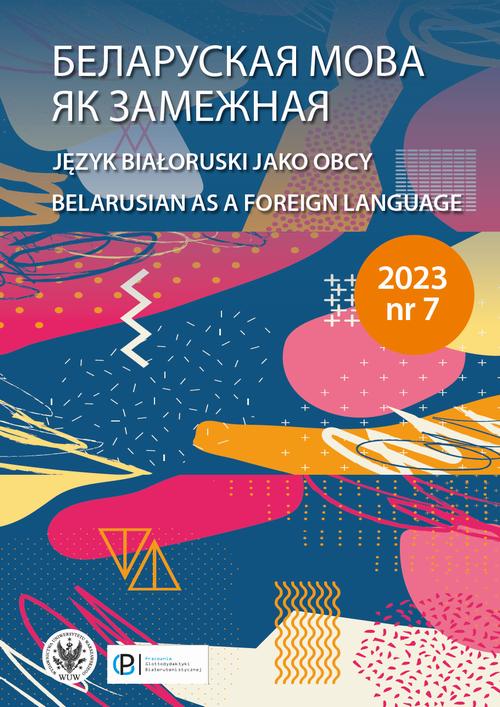 Numer otwiera artykuł poświęcony wykorzystywaniu strategii komunikacyjnych przy kształtowaniu umiejętności porozumiewania się cudzoziemców. Kolejne teksty omawiają: kształtowanie kompetencji międzykulturowej dzięki zastosowaniu tekstów literackich, które rozwijają rozumienie tekstu i ułatwiają tworzenie wypowiedzi, praktyczne aspekty nauki języka podczas zajęć uniwersyteckich dotyczących przekładu polsko-białoruskiego i białorusko-polskiego, metodę uczenia się języka obcego opracowaną przez I. Franka z wykorzystaniem oryginalnej literatury pięknej. W zeszycie zaprezentowano również stan badań nad nauczaniem języka białoruskiego jako obcego na podstawie bogatej listy publikacji na ten temat i przedstawiono 30-letnią historię olimpiady języka białoruskiego w Polsce. Publikacja na licencji Creative Commons Uznanie autorstwa 3.0 PL (CC BY 3.0 PL) (pełna treść wzorca dostępna pod adresem: http://creativecommons.org/licenses/by/3.0/pl/legalcode). ********* Belarusian as a Foreign Language The issue opens with an article devoted to the use of communicative strategies in shaping the communication skills of foreigners. The following texts discuss: shaping intercultural competence through the use of literary texts, which develop reading comprehension and facilitate the creation of utterances; practical aspects of language learning during university classes on Polish-Belarusian and Belarusian-Polish translation; Ilya Frank’s method of learning a foreign language using works of literature. The issue also presents the state of research on teaching Belarusian as a foreign language on the basis of a rich list of publications on the subject and presents the 30-year history of the Belarusian language Olympiad in Poland. The publication is licensed under the Creative Commons Attribution-ShareAlike 3.0 Poland license (CC BY 3.0 PL) (full license available at: https://creativecommons.org/licenses/by/3.0/legalcode).